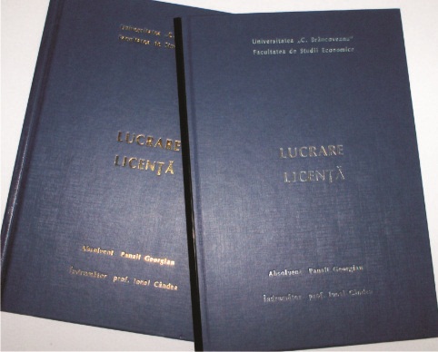 - Legatorie prin sistemul Metal Bind. Sistem cu sina metalica care permite adaugarea sau scoaterea de file din lucrare. - Aspect elegant al lucrarii. - Imprimare cu folio auriu sau argintiu. - Coperti de diferite culori cu sine metalice panzate asortate. | |