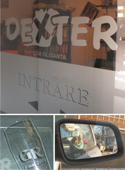 sticle, geamuri, oglinzi. - Imprimare pentru hoteluri si restaurante, ocazii festive si cadouri. - Ornamente geamuri usi locuinte. - Imprimare de siguranta la autoturisme pe oglinzile retrovizoare. |